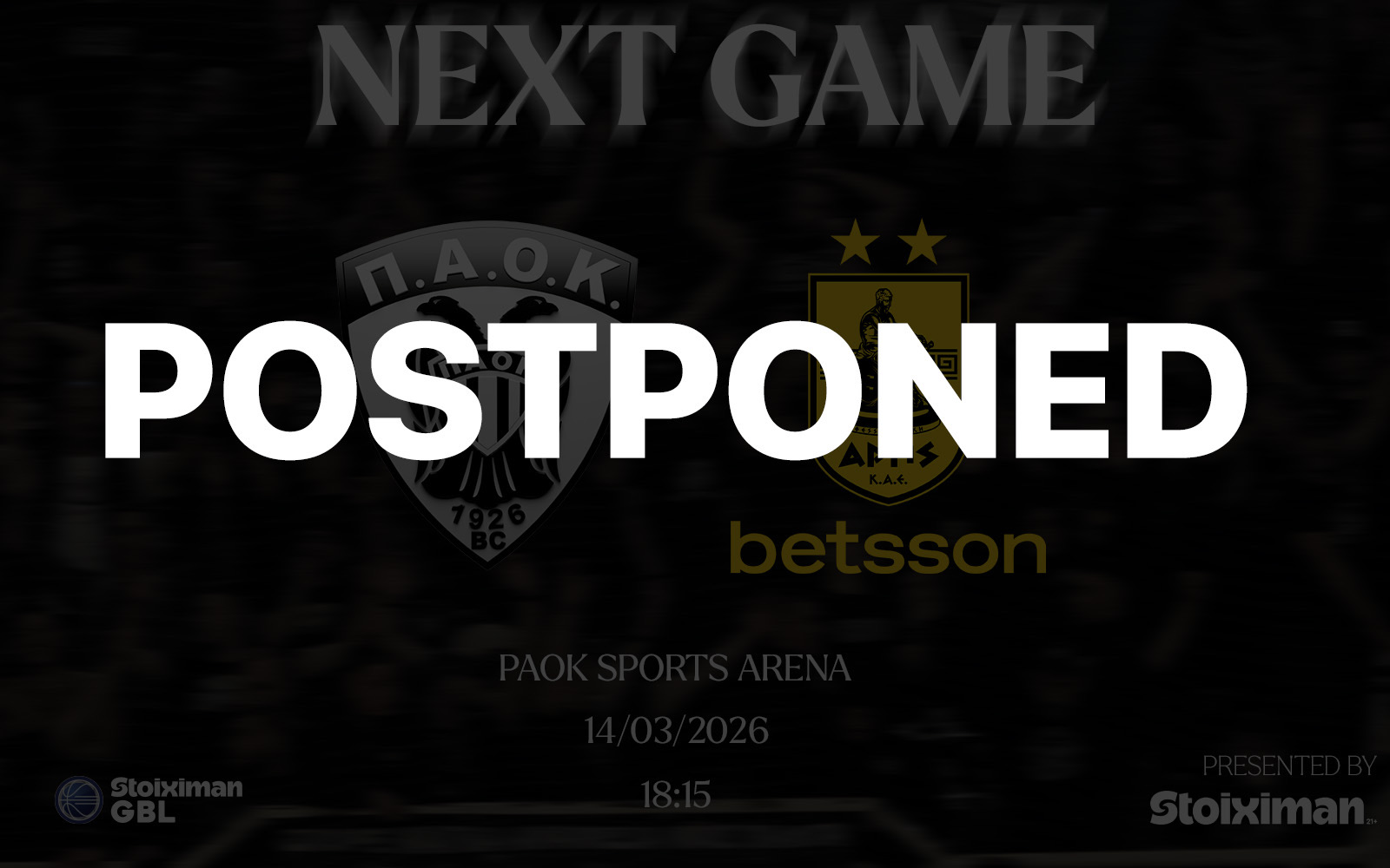 13 Μαρτίου 2026 Ειδήσεις Αναβολή του αγώνα ΠΑΟΚ – Άρης Betsson O αγώνας ΠΑΟΚ – Άρης Betsson που ήταν προγραμματισμένος γι...
