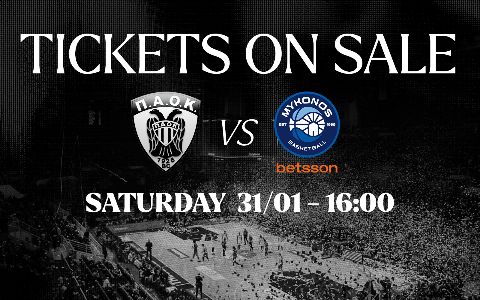 26 Ιανουαρίου 2026 Ειδήσεις Τα εισιτήρια για τον αγώνα ΠΑΟΚ – Μύκονος Betsson Η ΚΑΕ ΠΑΟΚ ανακοινώνει ό,τι ξεκίνησε η διάθεση των εισι...