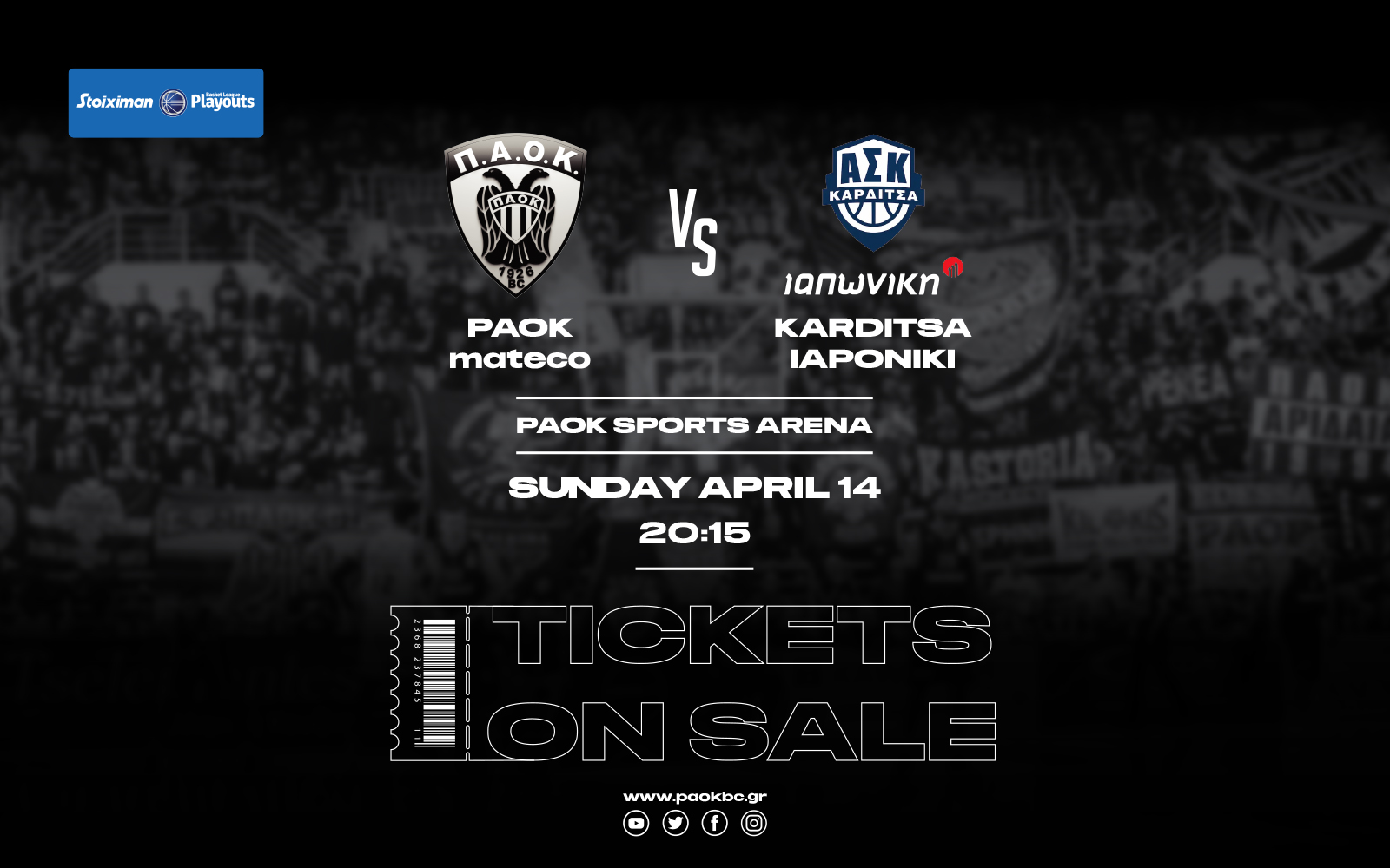 13 Απριλίου 2024 Ειδήσεις Ο ΠΑΟΚ υποδέχεται την Καρδίτσα με τον ανυπόμονο Kevin Porter Jr. Ο ΠΑΟΚ mateco επιστρέφει στο PAOK Sports Arena κα...
