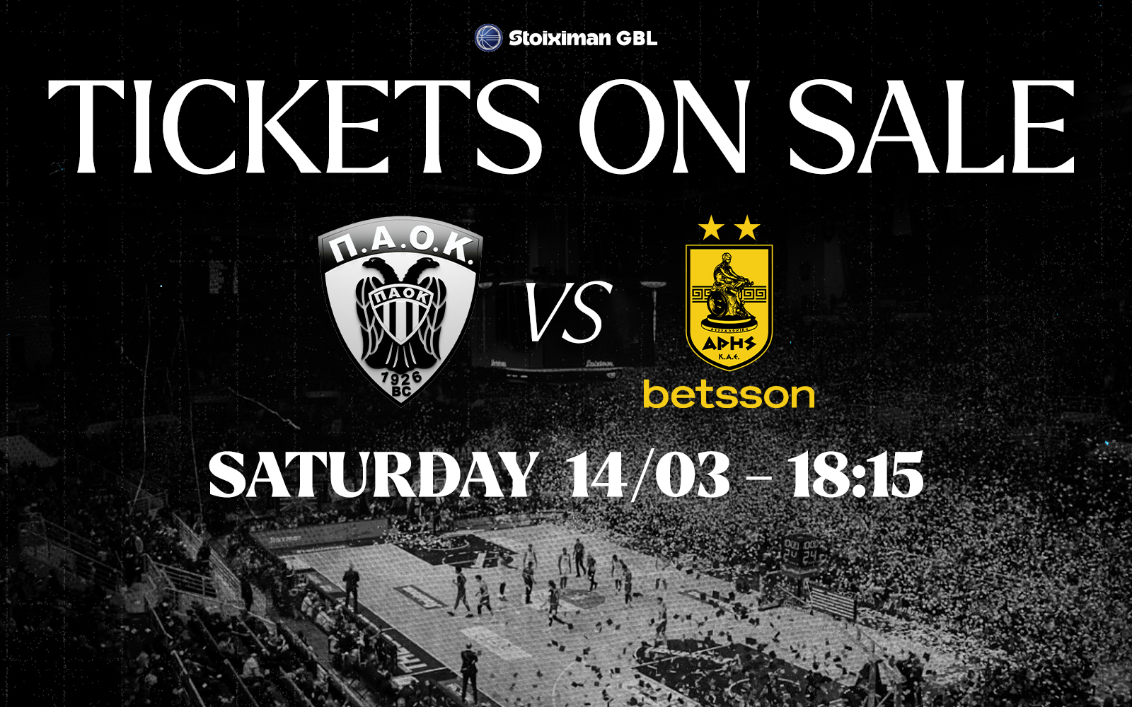 10 Μαρτίου 2026 Ειδήσεις Τα εισιτήρια για τον αγώνα ΠΑΟΚ – Άρης Betsson Η ΚΑΕ ΠΑΟΚ ανακοινώνει ό,τι ξεκίνησε η διάθεση των εισι...