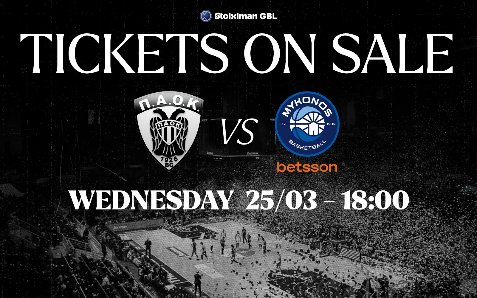 22 Μαρτίου 2026 Ειδήσεις Τα εισιτήρια για τον αγώνα ΠΑΟΚ – Mύκονος Betsson Η ΚΑΕ ΠΑΟΚ ανακοινώνει ό,τι από το πρωί της Δευτέρας (23/3...