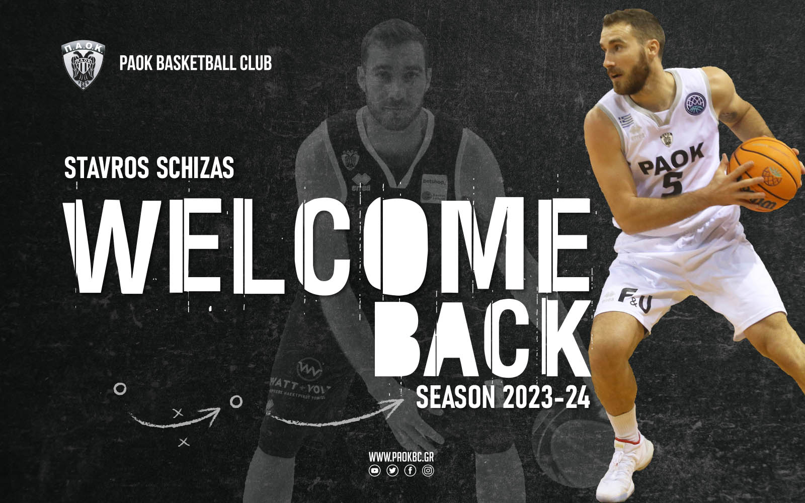 Η ΚΑΕ ΠΑΟΚ mateco ανακοινώνει τη συμφωνία με τον καλαθοσφαιριστή Σταύρο Σχίζα, ο οποίος επιστρέφει στην ομάδα μας μετά από τρία χρόνια και θα αγωνιστεί ξανά με τα ασπρόμαυρα τη σεζόν 2023-24.