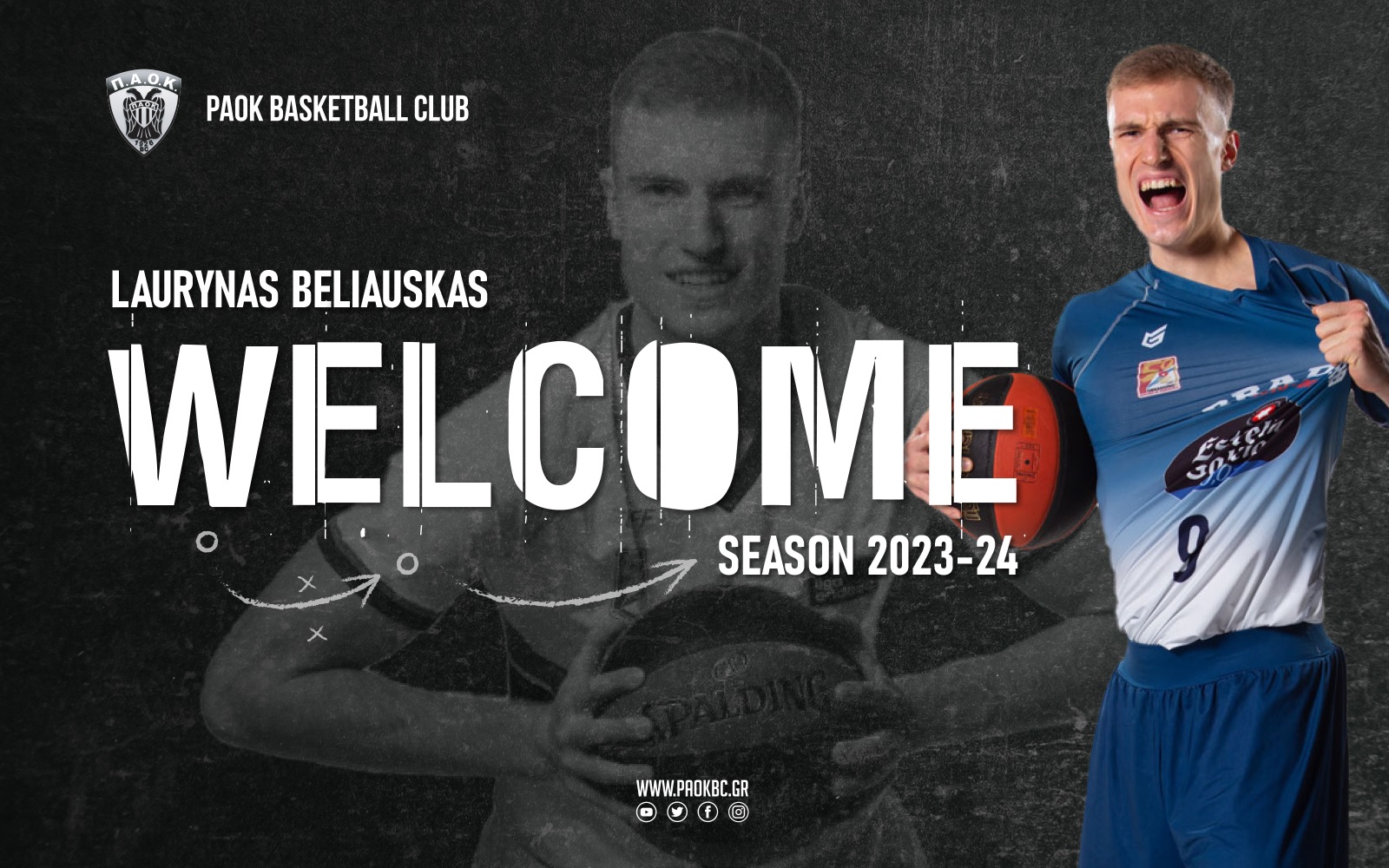 Η ΚΑΕ ΠΑΟΚ mateco ανακοινώνει τη συμφωνία με τον Λιθουανό γκαρντ Laurynas Beliauskas, ο οποίος θα αγωνιστεί στην ομάδα μας την σεζόν 2023-24. Καλωσορίζουμε στη μεγάλη οικογένεια του ΠΑΟΚ τον Laurynas, έναν αυθεντικό σουτέρ.